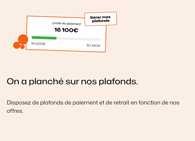 Comme ils dépendent de l'offre que vous avez sélectionnée, il n'est pas possible d'augmenter les plafonds de paiement de votre carte. En revanche, vous avez la possibilité de les diminuer si besoin.
