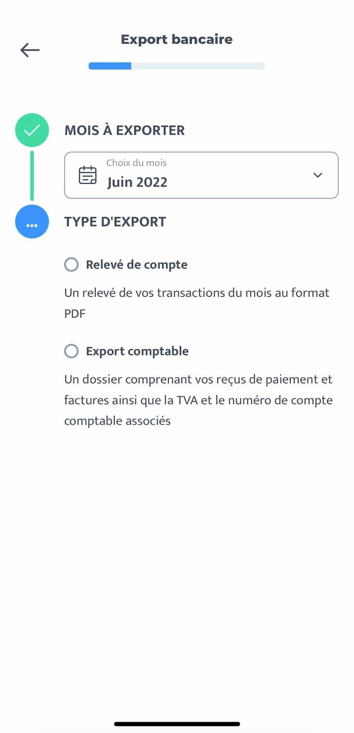Ensuite, vous pourrez choisir le mois et le format (PDF ou export comptable) du relevé que vous voulez exporter.