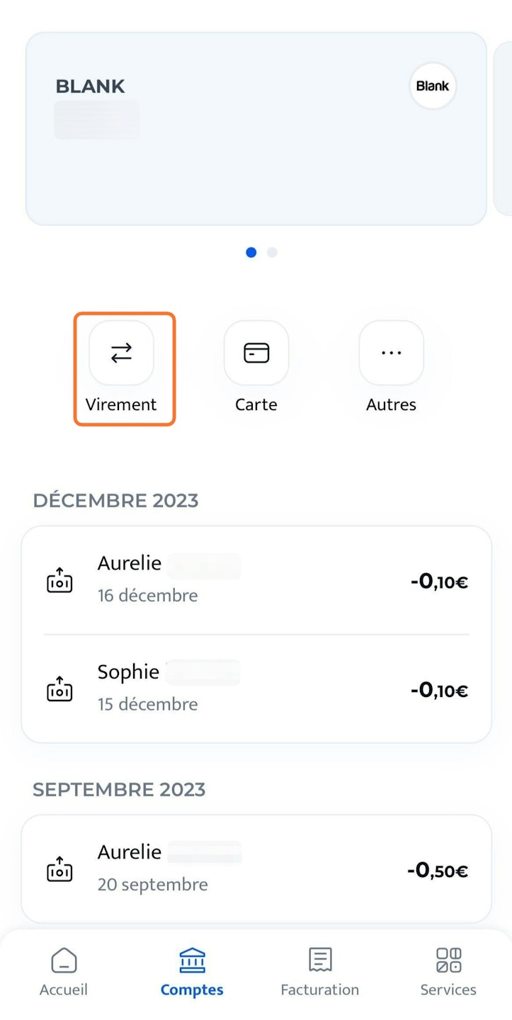 Pour ajouter un bénéficiaire de virement, rendez-vous sur votre application puis :
