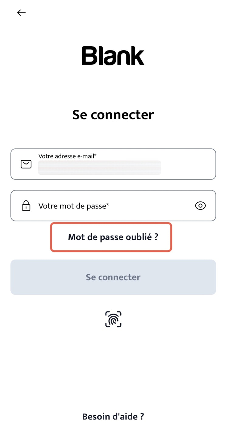3️⃣ Recevez un email pour changer votre mot de passe et vous connecter à votre compte Blank avec ce nouveau code.